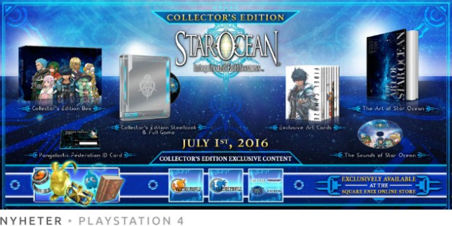 Förutom originalutgåvan släpps även en samlarversion för Star Ocean: Integrity and Faithlessness som bland annat inkluderar en bok med artwork, en CD med musik och ett gäng DLC-prylar. Ni kan läsa mer om samlarversionen här.